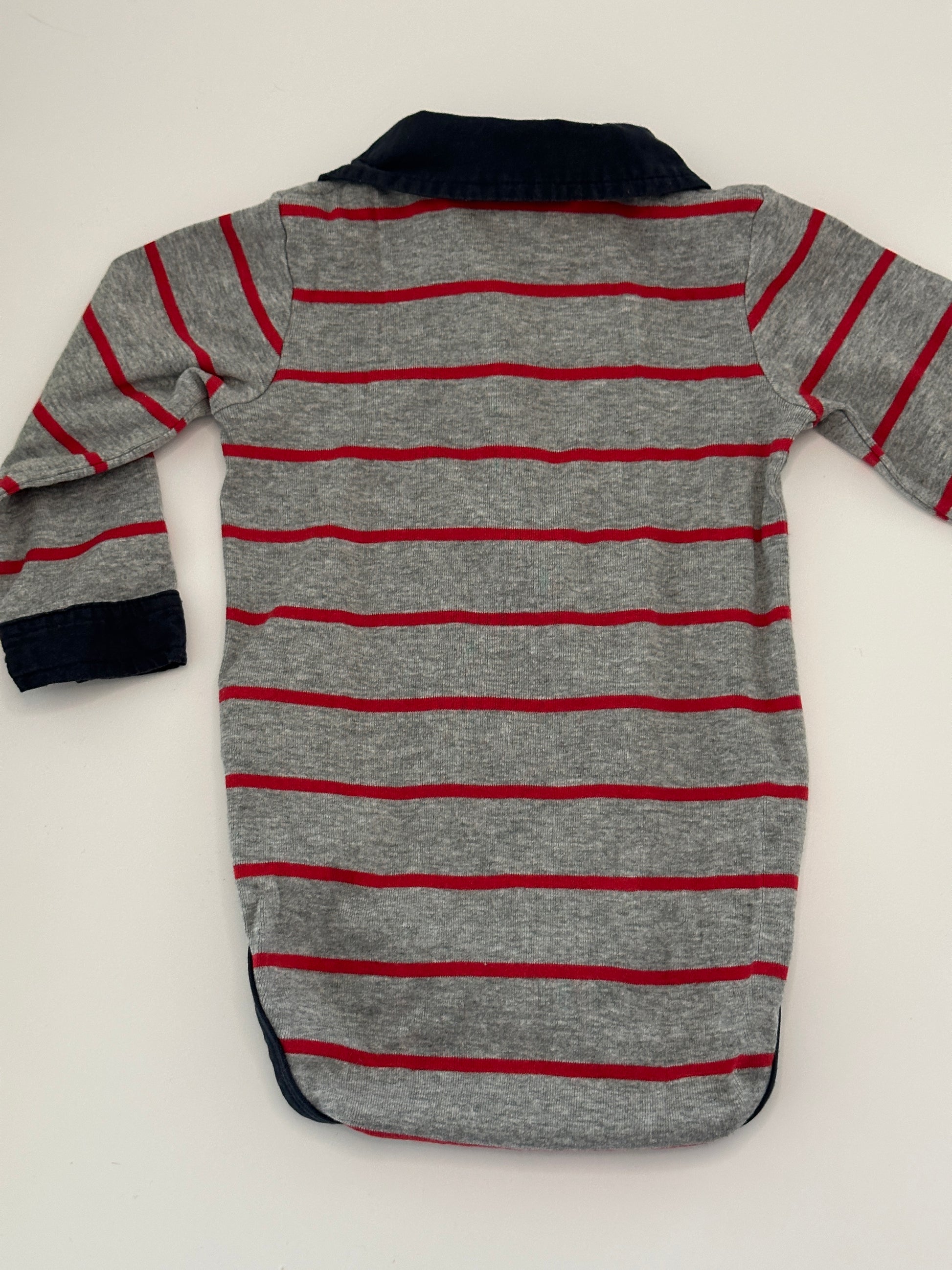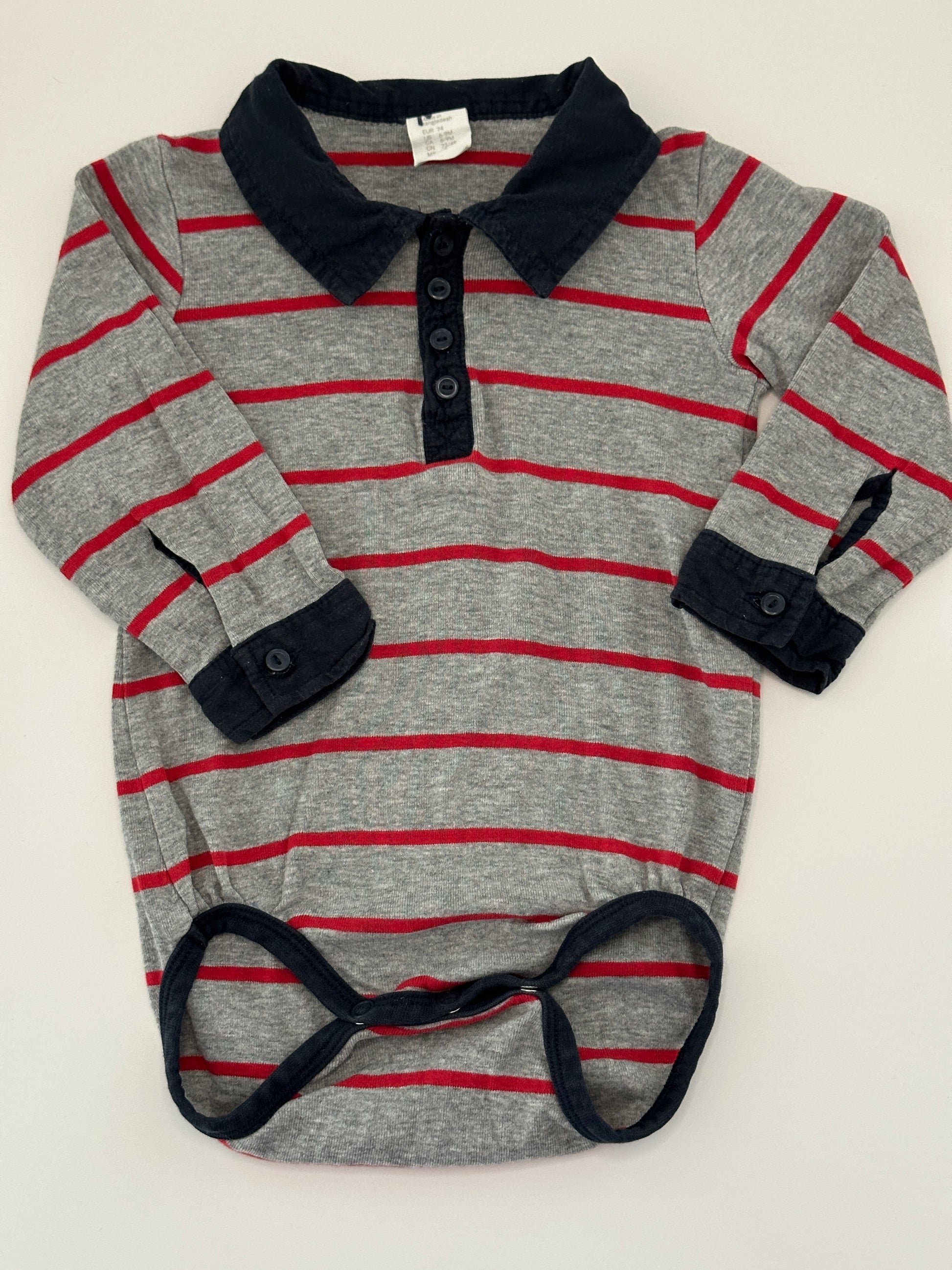 Langarmbody mit Kragen in Grau-Rot gestreift Gr. 74