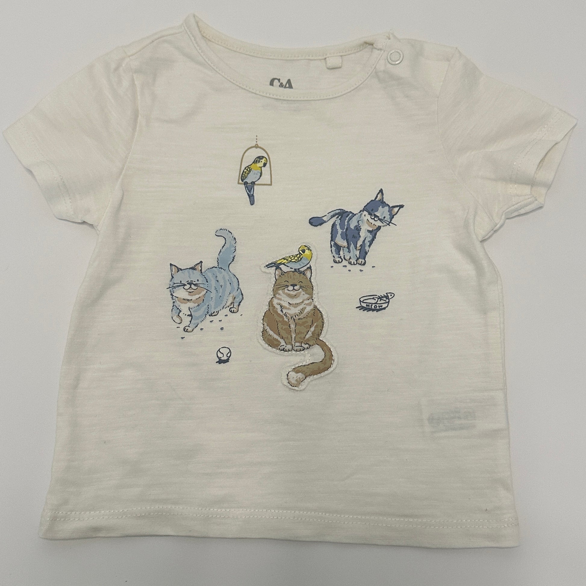 Kurzarm Babyshirt mit Katzenmotiv Gr. 68